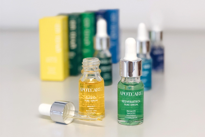 Noch heute werden die Produkte in Paris entwickelt und in der Normandie hergestellt. Die neue „Pure Serum Collection“ bringt die Philosophie von APOT.CARE – reine, hochwirksame Inhaltsstoffe und maßgeschneiderte Pflegelösungen – auf den Punkt: Sie besteht aus 10 Seren mit je nur EINEM hochpotenten Wirkstoff, die je nach Hautzustand individuell kombiniert werden können. Ein einfacher Online-Test hilft bei der Ermittlung der perfekten Dreier-Kombi.